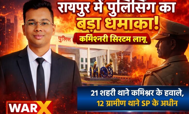रायपुर में पुलिसिंग का बड़ा धमाका! कमिश्नरी सिस्टम लागू, 21 शहरी थाने कमिश्नर के हवाले, 12 ग्रामीण थाने SP के अधीन, राजधानी की सुरक्षा व्यवस्था में ऐतिहासिक बदलाव